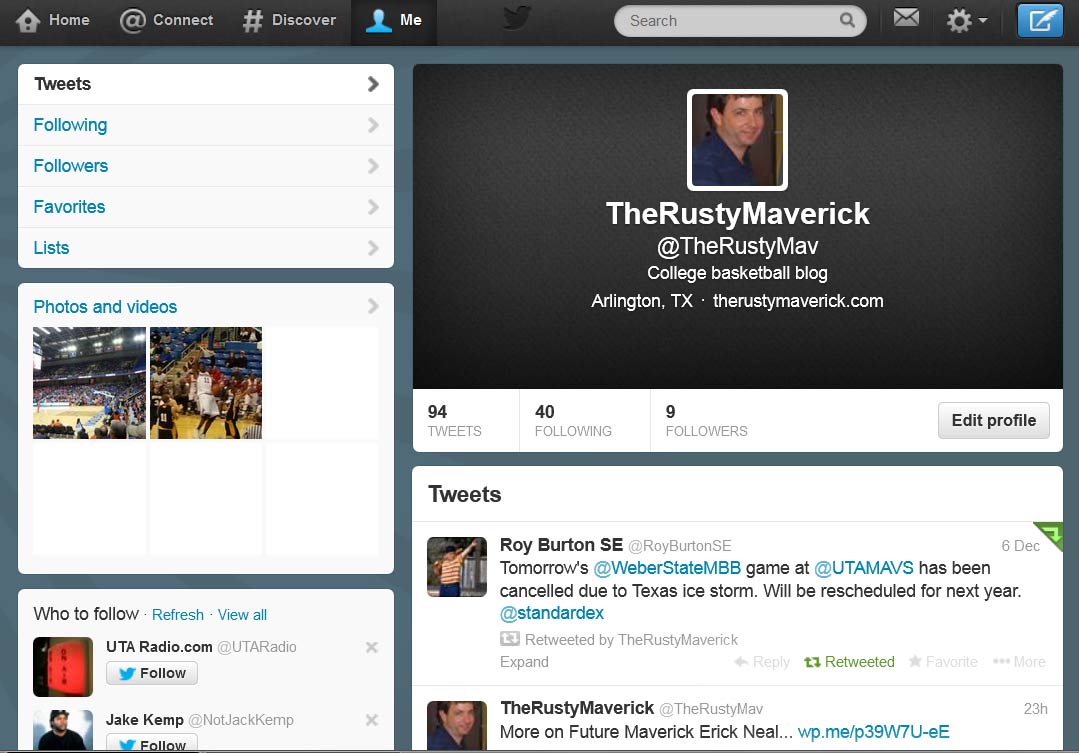 Follow Me on Twitter Published in Stuff I’ve Written for the Web | Full Size: 1079 × 753 Twitter @TheRustyMav, used primarily in conjunction with my college basketball blog, TheRustyMaverick.com. My twitter account automatically lets followers know the moment my blog has been updated. Both comments and trackbacks are currently closed. ← Previous Next →